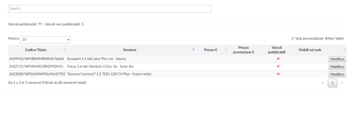 Per una rapida visualizzazione di queste auto basta utilizzare il Flag “Non Validi” in questo modo è possibile visualizzare solo le automobili non pubblicate.