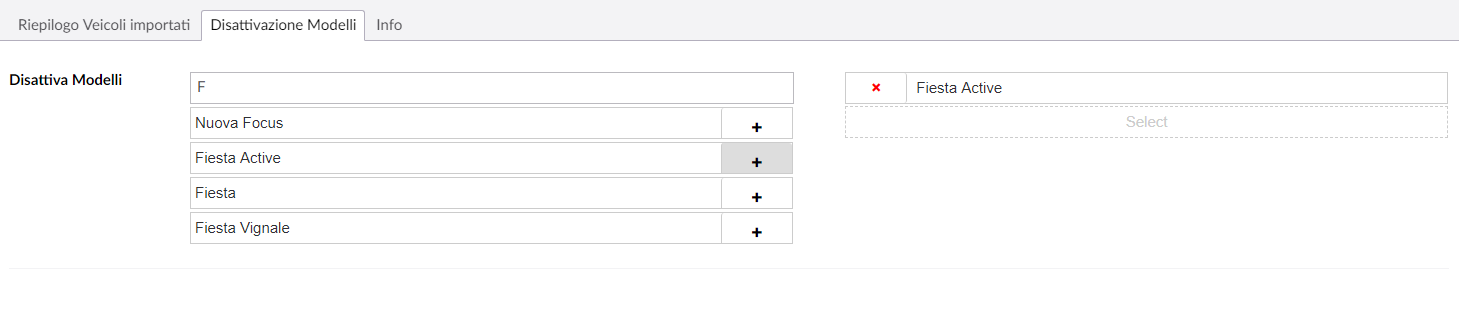 Questa funzionalità è disponibile nella scheda denominata “Disattivazione Modelli”