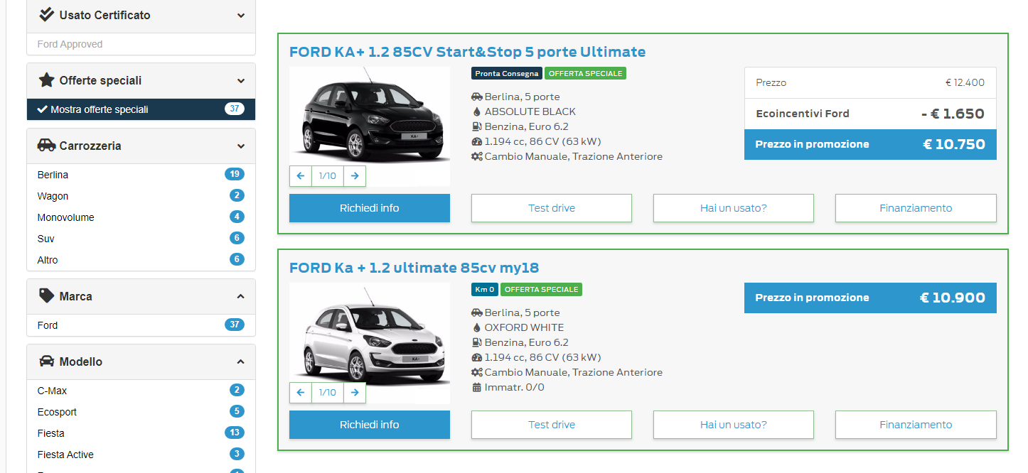 Le vetture non pubblicate sul Dealer Web Site Ford comprendono le auto prive di prezzo e/o con dati non validi.