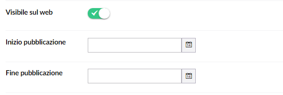 Per pubblicare la vettura basta abilitare il Flag di pubblicazione, inoltre è possibile abilitare una data di inizio e fine della visualizzazione sul web della vettura