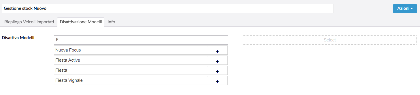Selezionando un modello è possibile disattivare la pubblicazione di tutte le vetture che comprendo la car-line scelta