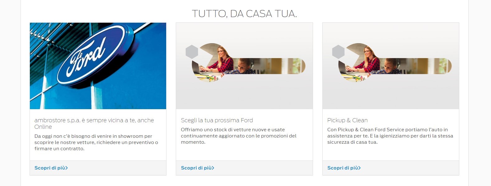 L’Home Page del DWS riprende il family feeling di Ford ed è stata studiata applicando le moderne tecniche di programmazione e le tendenze più recenti che hanno registrato migliori risultati in termini di tasso di conversione. La Home page ha una ...