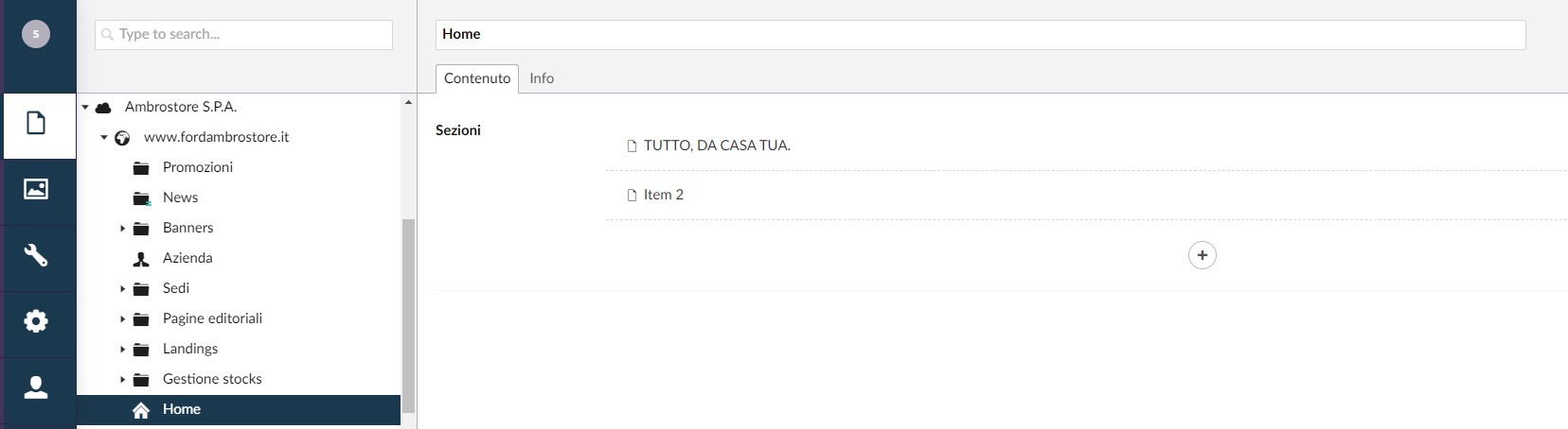 Selezionando Home in fondo alla lista dei nodi che compongono il vostro CMS, si accede alla sezione Contenuto che darà la possibilità di modificare i Box all’interno della Homepage.
