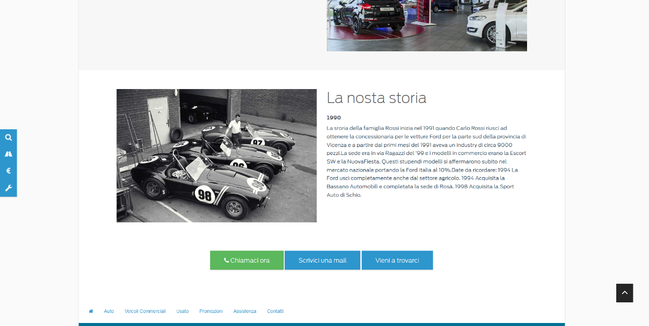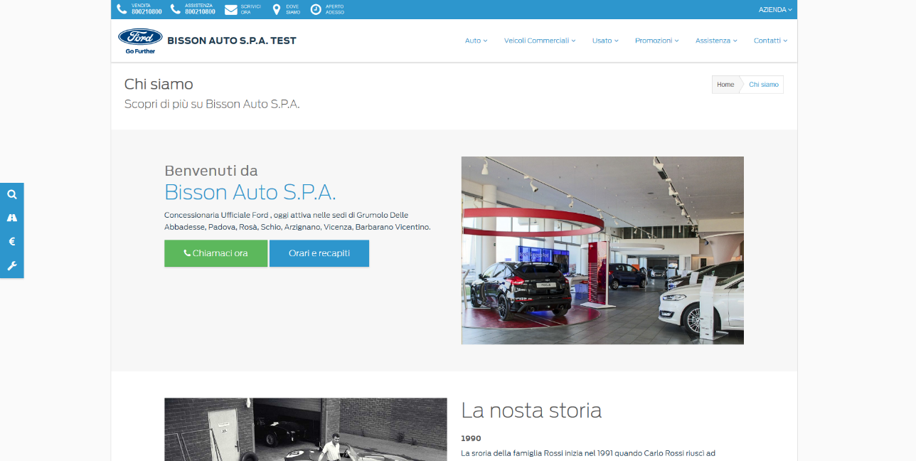 Cliccando sulla label Chi siamo, dal campo Immagine, possiamo inserire un’immagine che rappresenta la concessionaria. Il resto del testo (sulla sx) invece è creato dinamicamente.