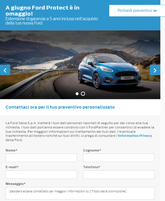 Il menù promozioni viene aggiornato con cadenza periodica da Ford Italia ed è diviso in più sottomenù. I principali sono: Promozioni auto, Veicoli commerciali, Business, Motorcraft Service 4+. Tale sezione può prevedere ulteriori sottomenù creati ad ...