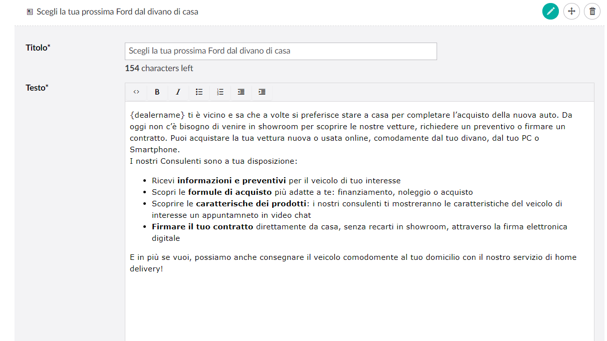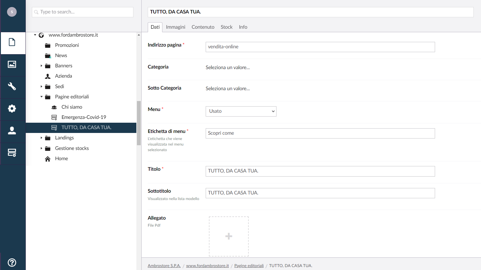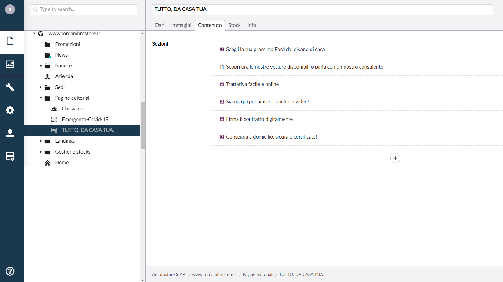 Nella sezione Pagine editoriale del CMS del vostro Dealer
