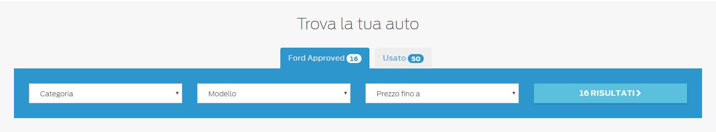 I filtri prevedono la possibilità di effettuare ricerche per categoria (City car, berlina, wagon, monovolume, SUV), modello e fasce di prezzo.